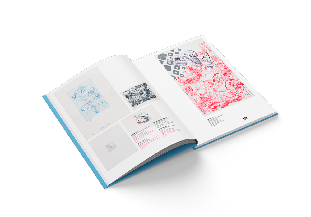 Attached to fine books and publishing, Alëxone Dizac devotes himself to the regular publication of printed works. Most of his productions are thus inventoried in catalogs designed by him. It is notably in the pages of a manifesto publication that the very wacky Alëxone Company appeared, an imaginary company “specializing in large-scale pictorial production” of which he holds the position of CEO. Behind this pastiche of a multinational with 17,899 employees (including three employees!), the independent artist constantly replays the practice of painting and drawing in constantly renewed artistic proposals.