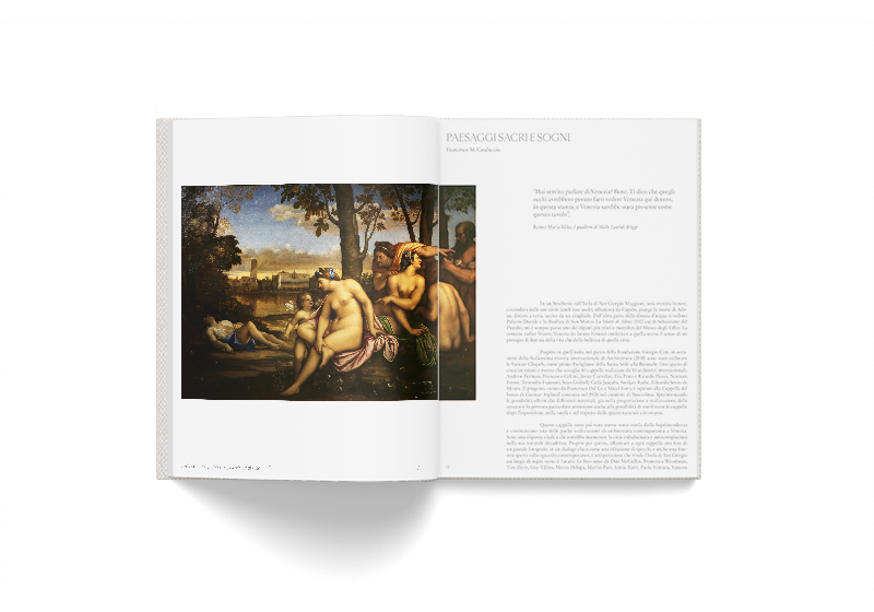 In 2018, the Giorgio Cini Foundation promoted the creation of the Vatican Chapels, the first Pavilion of the Holy See at the XVI International Architecture Exhibition - La Biennale di Venezia. Ten chapels created by ten international architects: Andrew Berman, Francesco Cellini, Javier Corvalan, Eva Prats and Ricardo Flores, Norman Foster, Teronobu Fujimori, Sean Godsell, Carla Juacaba, Smiljan Radic, Eduardo Souto de Moura, accommodated in a space of approximately one hectare and a half. Created as a temporary installation, they then became permanent architecture that can still be visited today. In this place in the lagoon suspended between water, sky and earth, ideal for hosting art, reflection and spiritual experience, the Sacred Landscapes exhibition, through the works of ten artists, invites us to reflect on the sacredness of the place and the role of man as creator and guardian.
