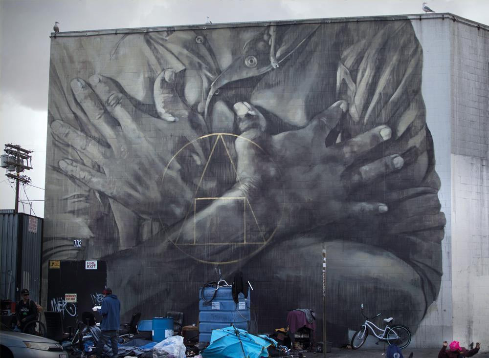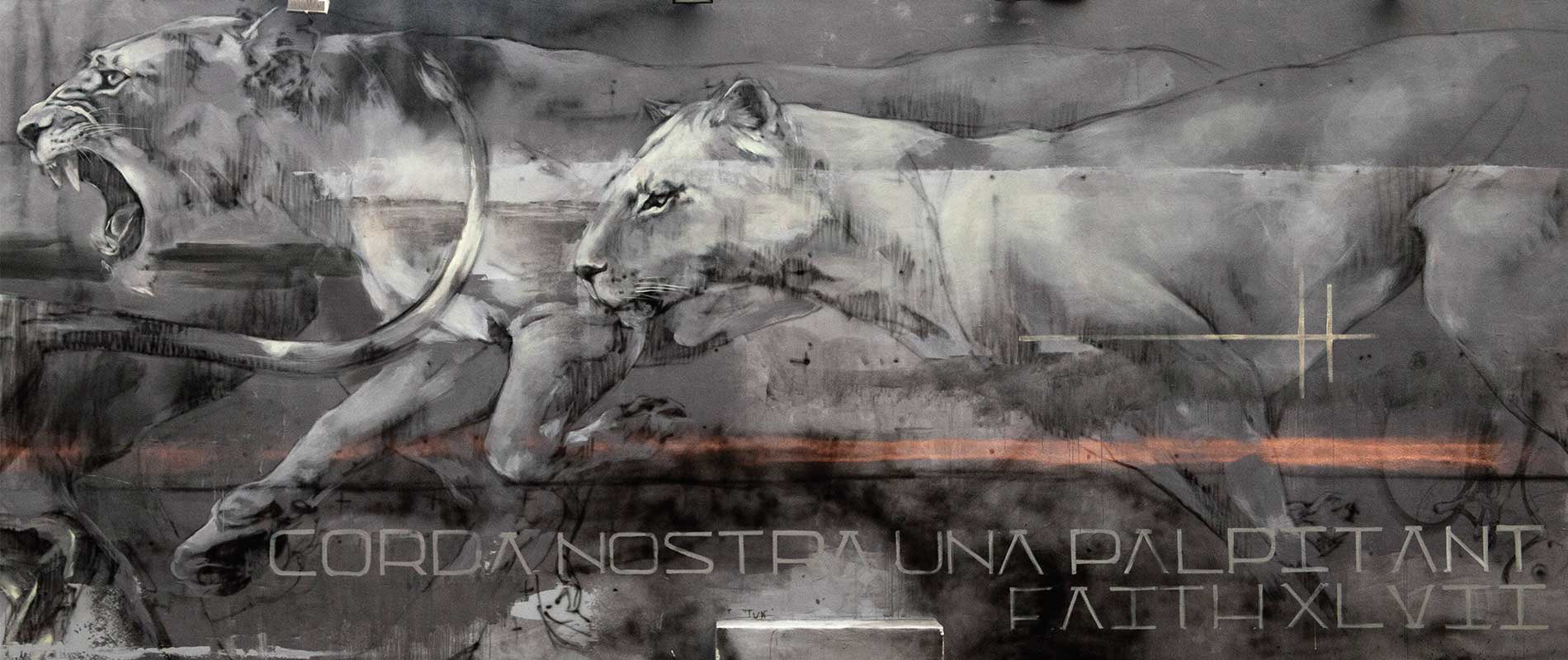 Faith’s artistic background sparks from the world of graffiti; she is one of the most active artists in South Africa. She uses Street Art to spread her message to the world, trying to give voice to the disenfranchised and to direct the media and the public’s attention to areas where there is some form of conflict or that in some way need positive vibes. Her message transcends the medium, and her expressive power has an astonishing social impact: her works are able to change the social fabric in which they are created and provide an alternative to the mass point of view, which is intimist and mystic but equally effective. Faith has created Street Art pieces all over the world, with the same tenacity and passion that have become her distinctive traits, without underestimating her work in the gallery, where she experiments with new devices and interacts with the most disparate materials, such as found objects, paper, video, installations and so on.