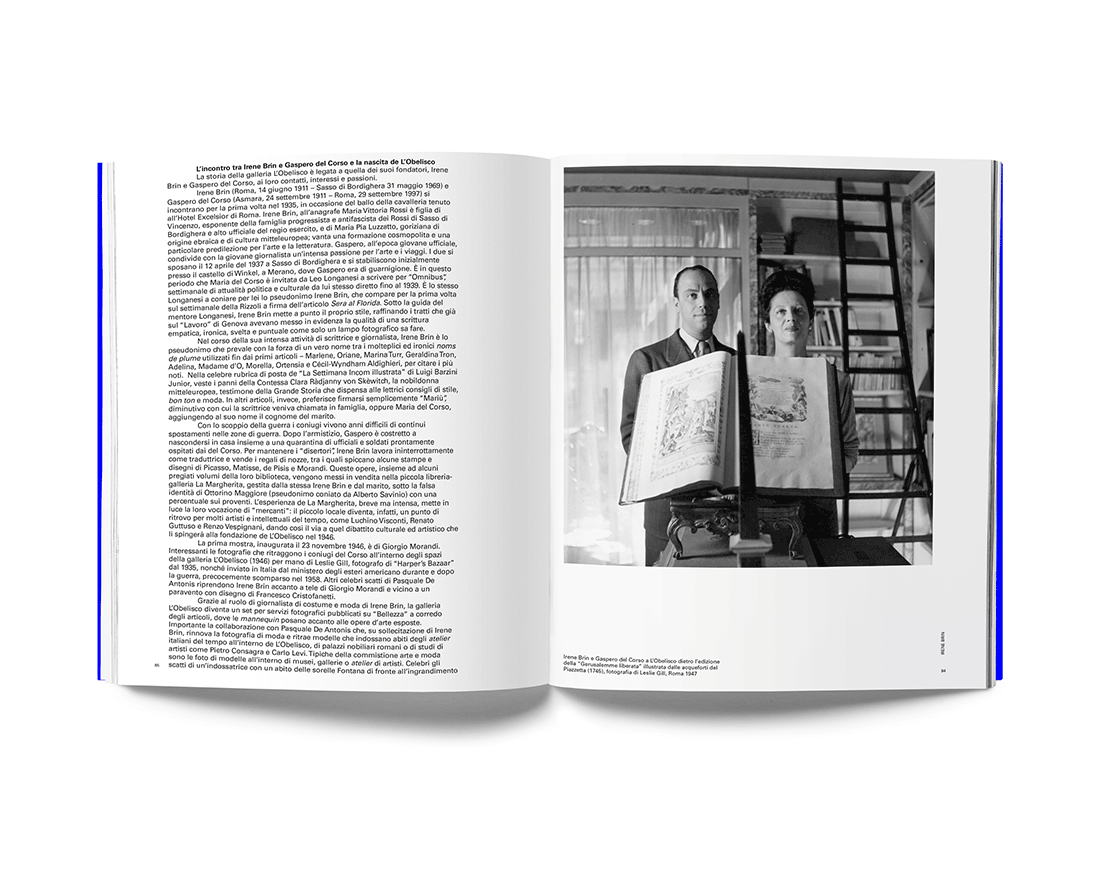 Irene Brin, Gaspero Del Corso e La Galleria L'Obelisco - Before other galleries established themselves as the trendsetter of art history in Rome between the late ’50s and early ‘70s, L’Obelisco gallery (1946-1981) was one of the few places in Rome to promote contemporary artistic research with an intense, continuous and experimental activity open to both Italian and foreign art and collectors. Sprung in the wake of the Liberation, it was directed by Gaspero del Corso and Irene Brin, an influential interpreter of the most cultured and eclectic fashion journalism of the time, and a key figure of the international launch of the “Made in Italy” trademark, from the postwar period onwards. Thanks to the couple’s intuition, wide interests, openness towards novelties and their worldly milieu, L’Obelisco gallery not only supported contemporary art among connoisseurs, critics and artists, but also addressed a vaster and varied audience, radically innovating art display, communication and promotion, in the spirit of cross-pollination and dialogue between different areas of culture. This book is the first monograph about the Roman gallery. It features scientific contributions on the complex figure of Irene Brin and the legacy of L’Obelisco, a rich and partially unpublished heretofore photographic body, documentary registers, and commentaries, collected for the occasion by those who, for various reasons, have experienced that fundamental part of the history of art and culture of our country.