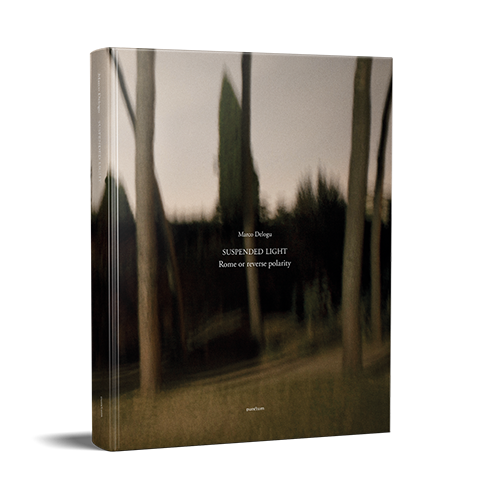 private aspects, in its beauty and in its inertia. An exploration which starts from the contradictions of a big city and from its “reverse polarity”. Through the special light of Rome and the reversal of its values, Delogu narrates its timeless dimension beyond space. A reversal which shows the excess of light which have made these daytime photos “blind”, where everything has been swallowed up by the white, as if it were the dark of night, where only signs hanging in the void have remained which tell more than they show. In the landscapes illuminated only by the faint light of the moon, the night-time photos, things appear at the limit of their physical presence, brushed by the subtle and unsure light of the moon, as if about to disappear. In both cases we are faced with “apparitions” rather than images. As in the hazy contours of a dream, everything here loses physicality, filled with light or barely discernible in the half light of a slightly blurred image. A dream-like dimension which makes everything unreal, suspended in time and space. Through these apparitions, in fact, Delogu narrates the city and the signs and urban fragments appear suspended and sudden. Every element surfaces from a far-off memory made up of dog race tracks, cinemas now fallen into disuse, mythical places on the banks of a river, all full of stories. Hazy images, like something whose memory is being lost. This is how these night settings lit by the moon appear.