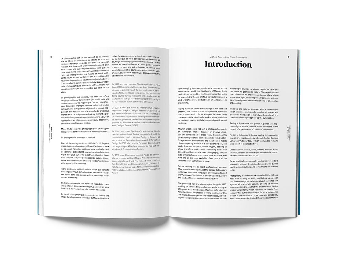Colour zings through the pages and pierces through the eyes of readers in this explosive collection of Mauren Brodbeck’s diverse artworks. Brodbeck, an artist from Geneva, defies categorization, and works within and between genres of photography, collage, graphic design, and installation. Her mutilayered and polysemic images exist outside of time and space, while remaining grounded in the familiar urban landscape of a warehouse, a house, a parking lot.